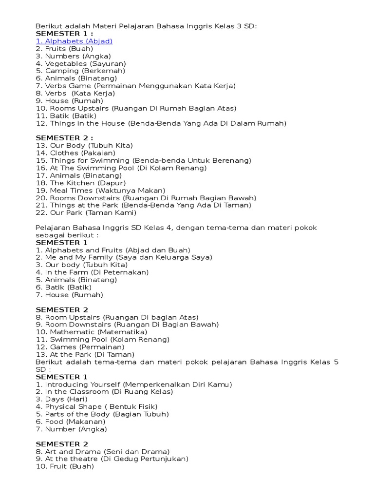 Materi Bahasa Inggris Sd Kelas 3 / Materi Pembelajaran Bahasa Inggris Kelas 3 Sd Hobby Youtube / Maybe you would like to learn more about one of these?